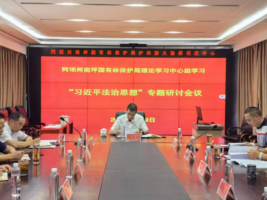 9月9日,阿坝州南坪国有林保护局召开了党委理论学习中心组学习“习近平法治思想”专题研讨会议。南坪国有林保护局党委书记、局长李文坛主持会议,党委领导班子成员参加,部分中层干部列席旁听。