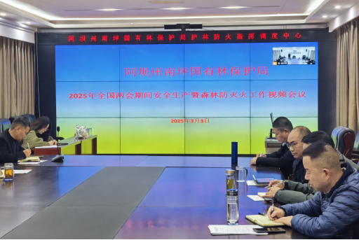 2025年3月3日,阿坝州南坪国有林保护局召开安全生产暨森林防灭火工作视频调度会,局党委书记、局长李文坛主持会议,局森防指挥部成员在视频会议室参会,各林场、加油站及白水河电站负责人以视频形式参会。