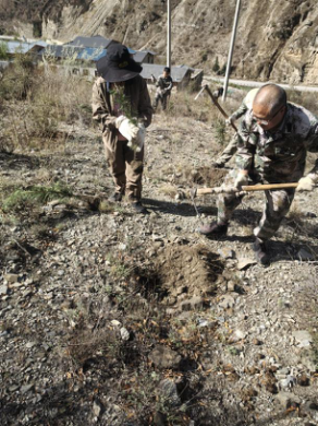 4月17日,在县公益诉讼生态修复基地(双河镇团结新村荷叶坡),南林局与九寨沟县检察院联谊开展全民义务植树活动。