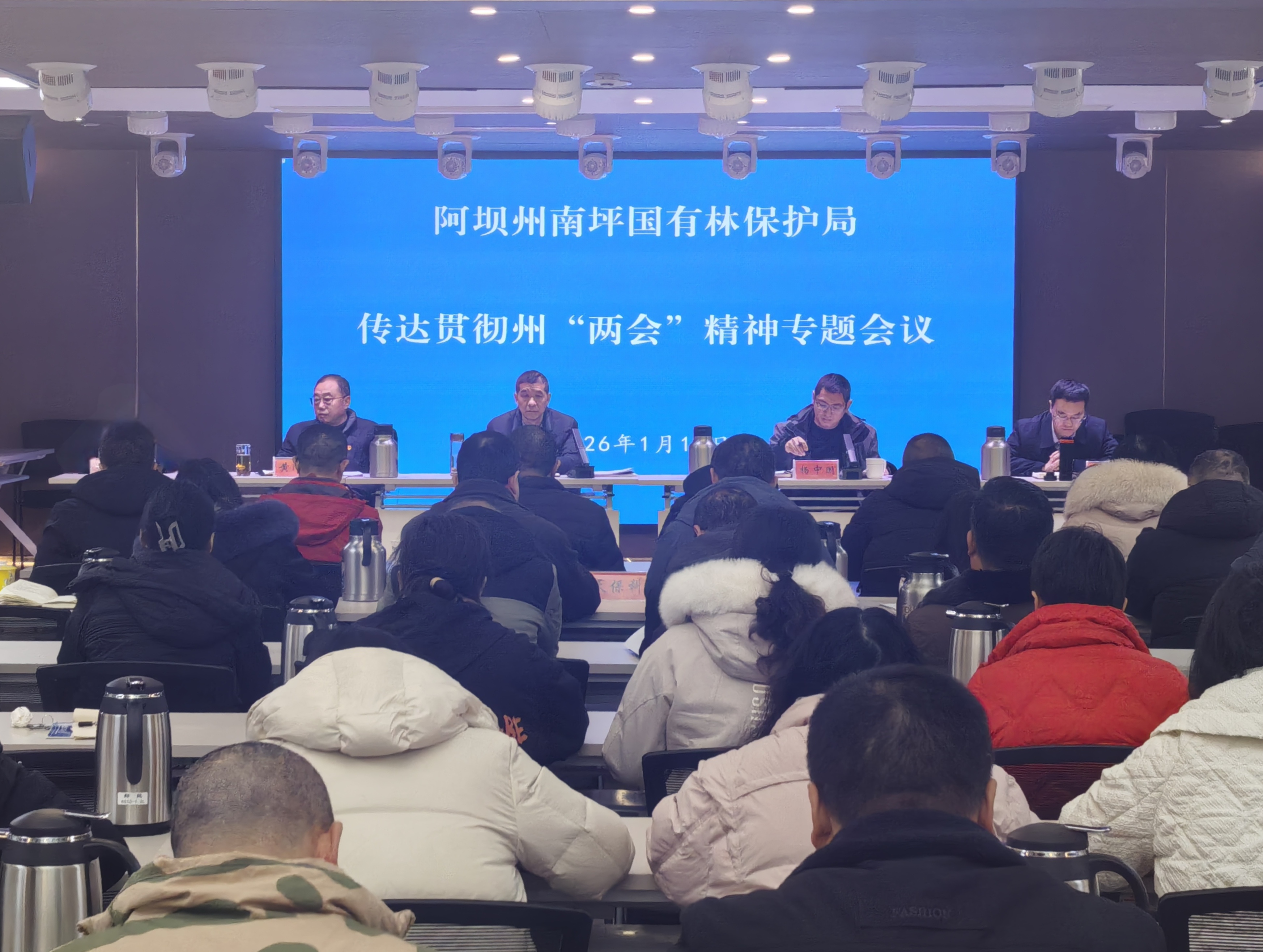 1月14日,阿坝州南坪国有林保护局党委书记、局长李文坛主持召开专题会议,深入传达贯彻州“两会”精神。局领导班子成员、全体中层干部及各单位、部门职工代表参加会议。