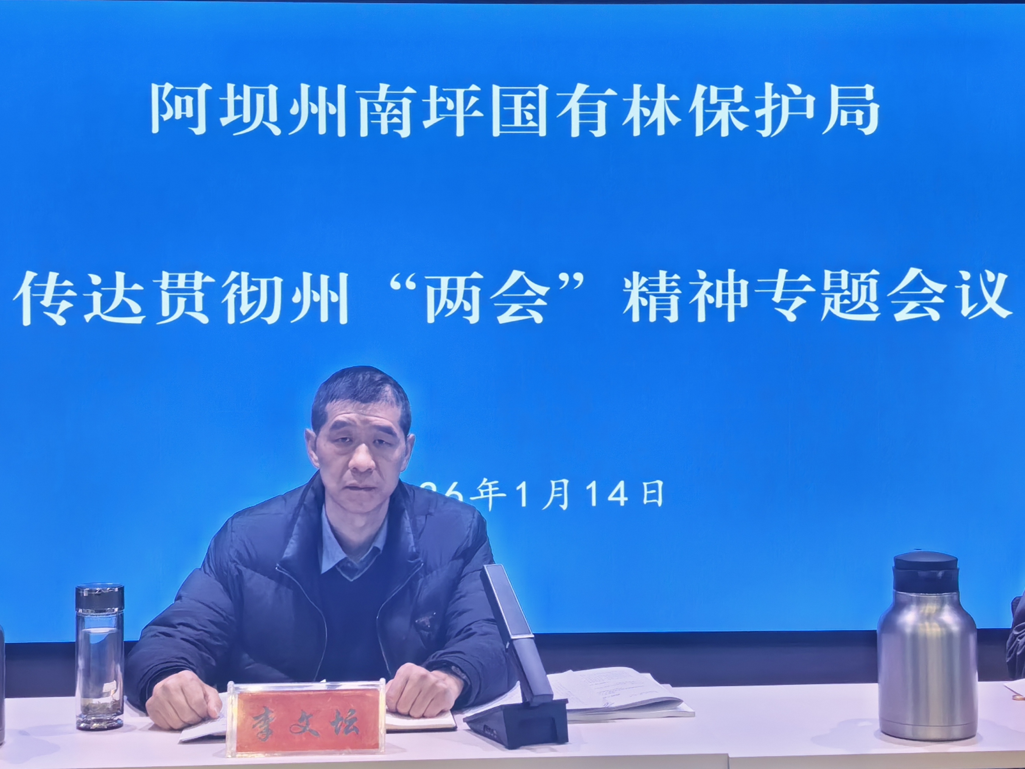 1月14日,阿坝州南坪国有林保护局党委书记、局长李文坛主持召开专题会议,深入传达贯彻州“两会”精神。局领导班子成员、全体中层干部及各单位、部门职工代表参加会议。